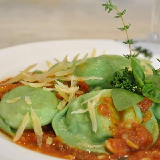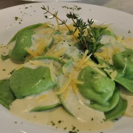 Ravioli Verde De Alho Poró E Queijo Emmenthal