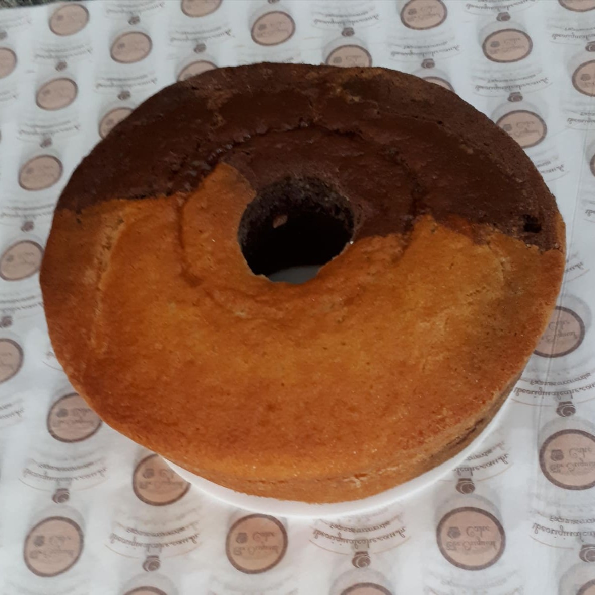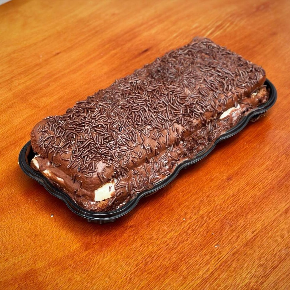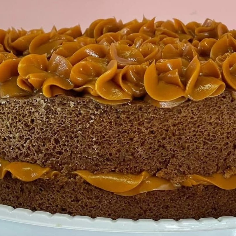 Massa de bolo com canela, recheio no meio e em cima com doce de leite qualidade maxima.