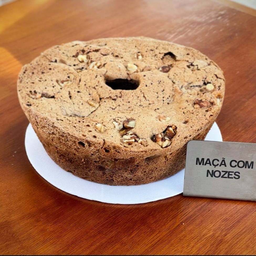 Massa com canela, acucar mascavo, pedaços de maça e pedaços de nozes