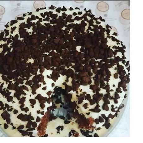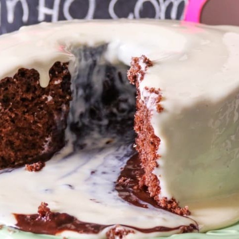Massa de chocolate ou cenoura (colocar observação ) e bastante calda de chocolate no buraco.