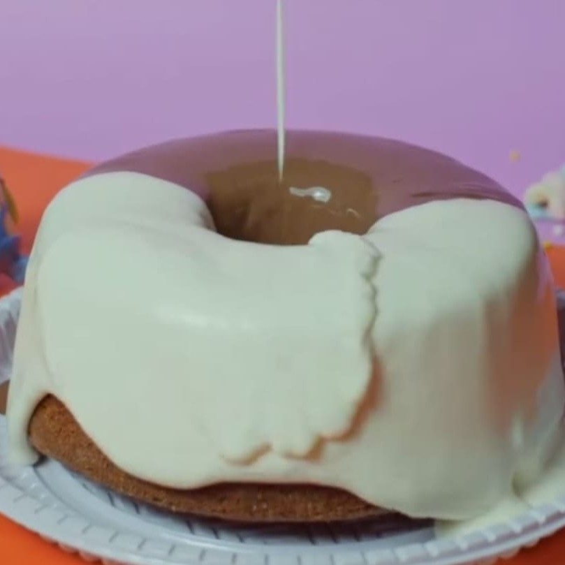 Massa de chocolate. Metade calda de Ninho e metade chocolate