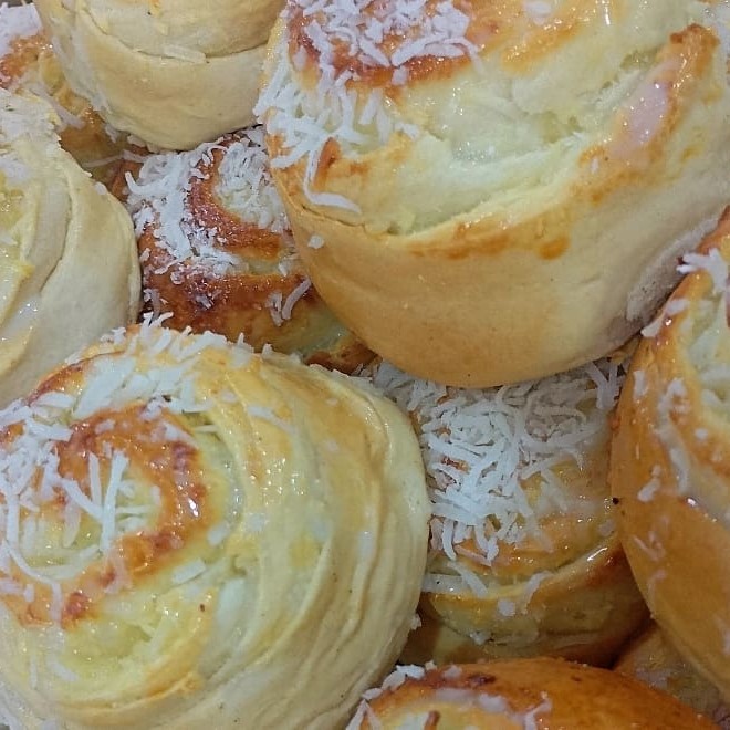 Biscoitinho massa amanteigada , com coco e doce de leite.