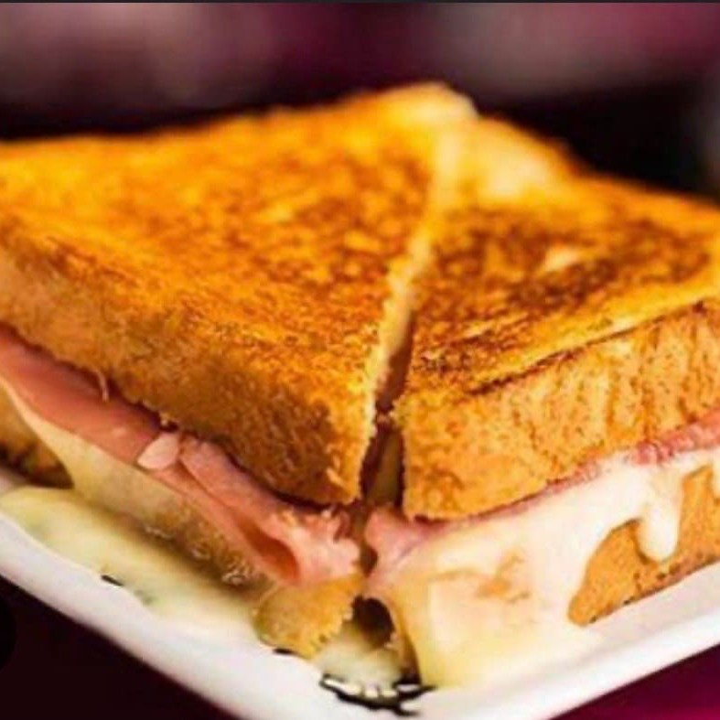 Pão francês ou pão de forma, ovo, presunto e mussarela. Feito na chapa