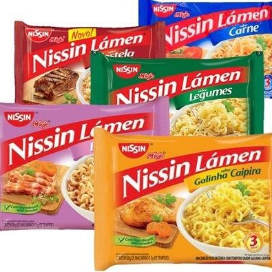 Sabores Costela, Galinha, Carne com Tomate, Talharim e Turma da Mônica.