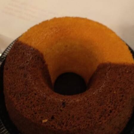 Bolo Caseiro metade tradicional, metade chocolate.
