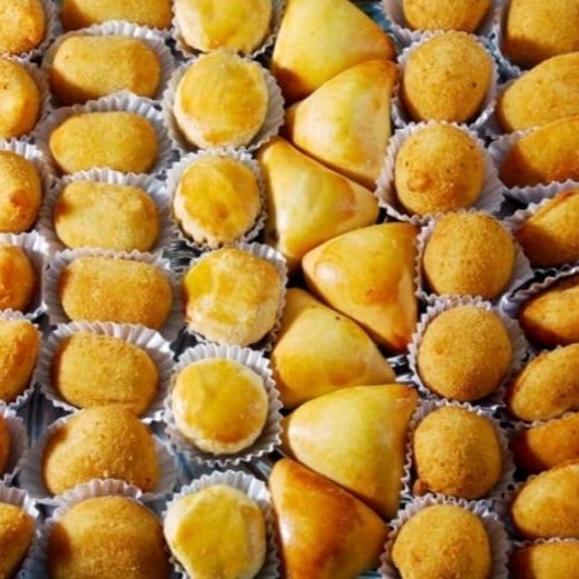 Coxinha requeijão , empadinha de frango e alho poró,risole de milho,bombom de presunto.
