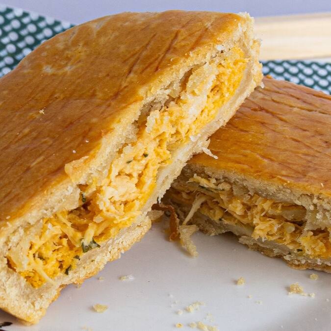 É uma deliciosa opção feita com uma massa leve, crocante e dourada, recheada com frango desfiado, bem temperado e preparado com carinho.