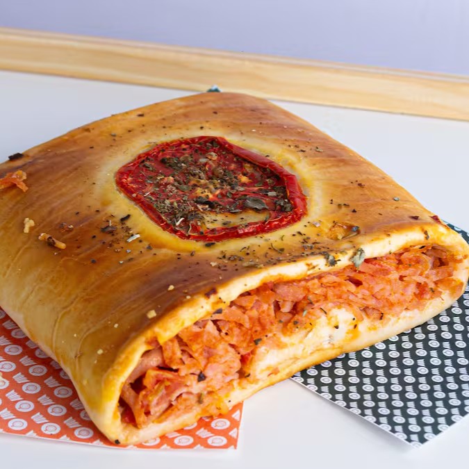 É é uma combinação irresistível de sabores frescos e deliciosos. A massa leve e dourada envolve um recheio generoso de presunto, queijo muçarela derretido, tomate suculento, cebola e pimentão, proporcionando uma explosão de sabor a cada mordida.