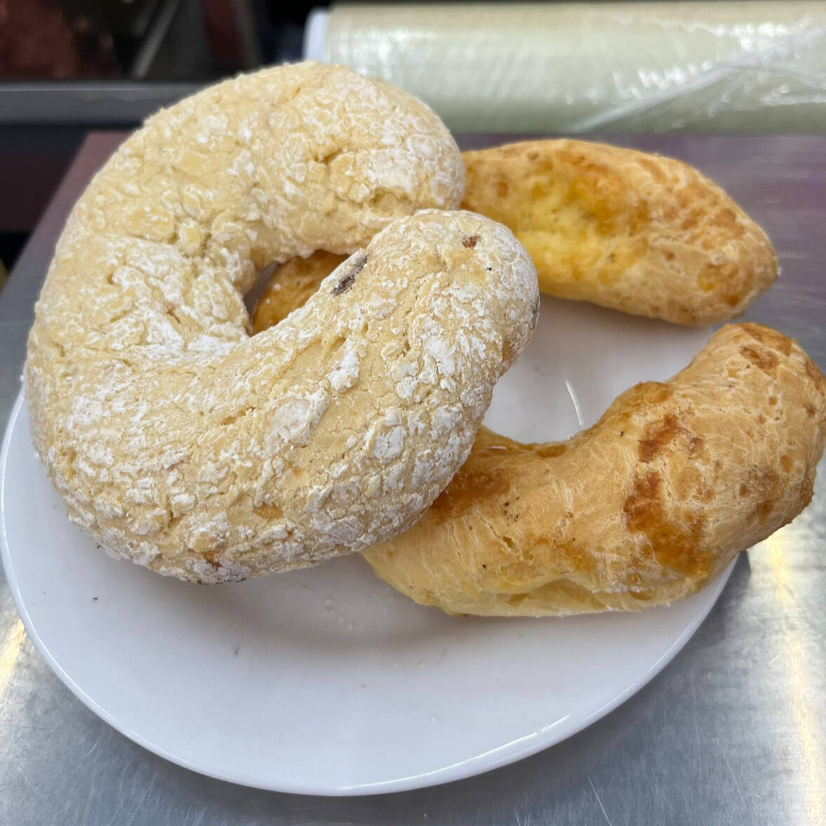 1 ferradura de queijo com polvilho, 1 ferradura de queijo