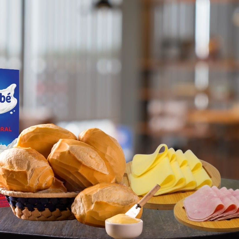 6 pães francês + 100g de mussarela+ 100 gramas de presunto + 1 litro de leite itambé cx