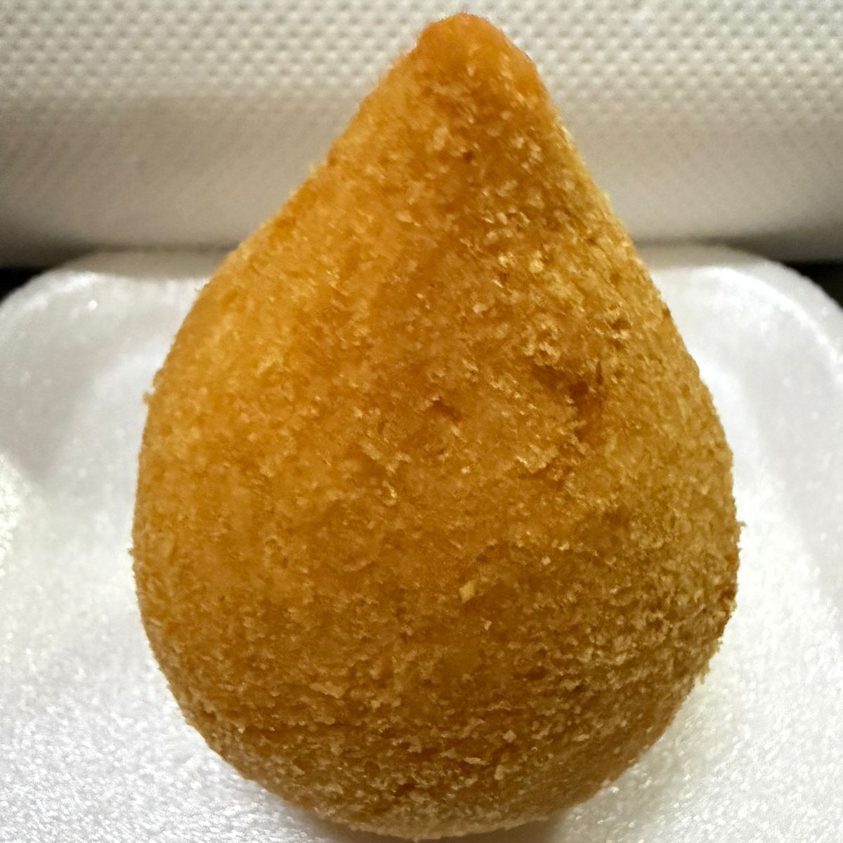 Coxinha recheada com frango desfiado e temperos especiais, envolta em uma massa crocante.