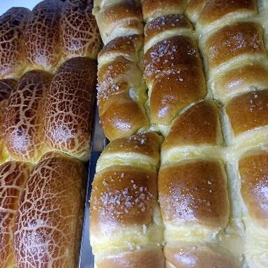 Pão liso, com creme, com açúcar, pão caseiro e pão de hambúrguer.
