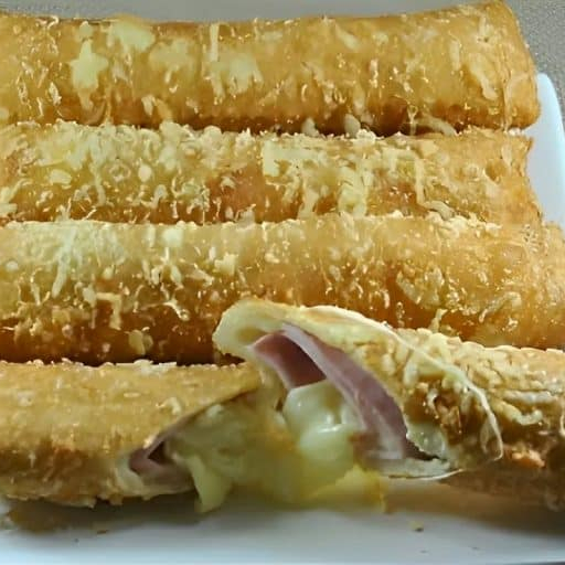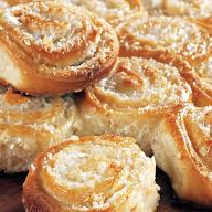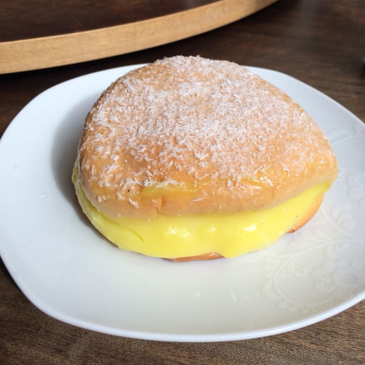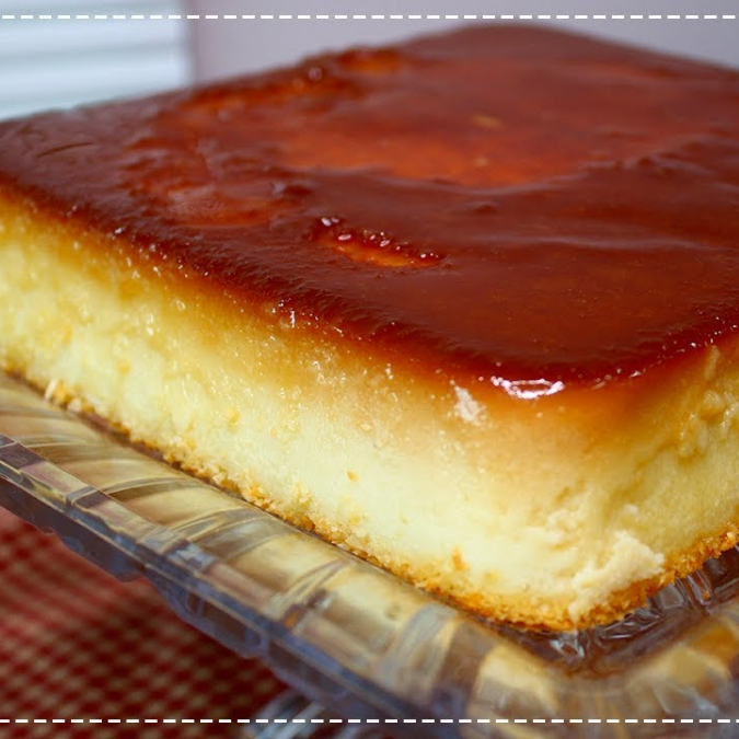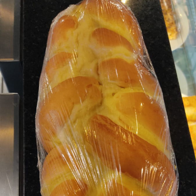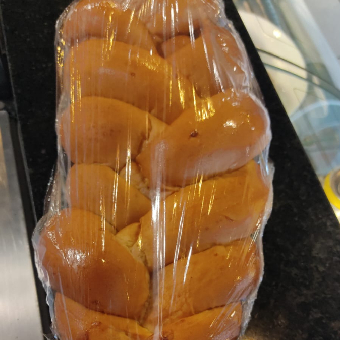 Massa de pão de doce ao leite assada, recheada com doce de leite.