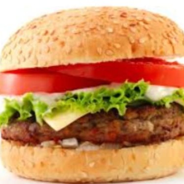 Pão de hambúrguer ou pão de sal, carne de hambúrguer, mussarela, alface, tomate, batata palha e milho verde.