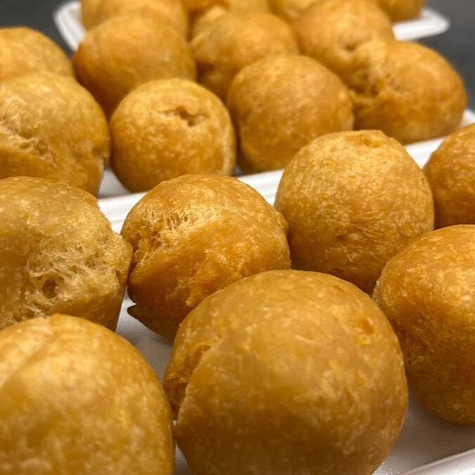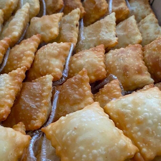 Biscoito frito de farinha de trigo e queijo.