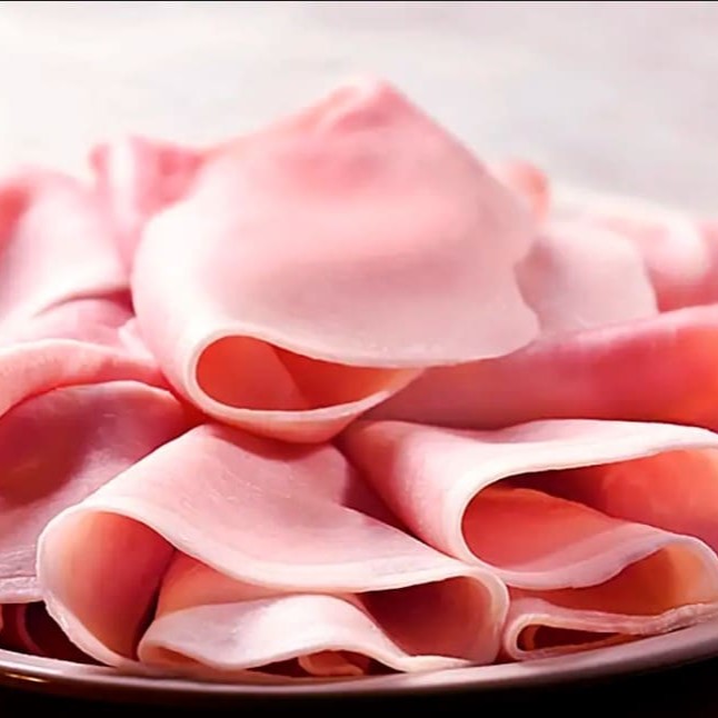 Presunto fatiado, ideal para sanduíches e lanches rápidos, oferecendo um sabor suave e uma textura macia.