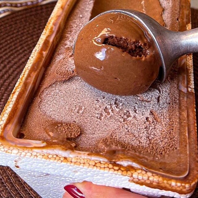 Brownie de chocolate artesanal feito pela casa.