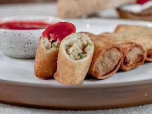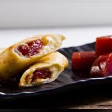 Delicioso rolinho primavera de queijo e goiabada. 3 unidades