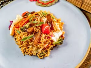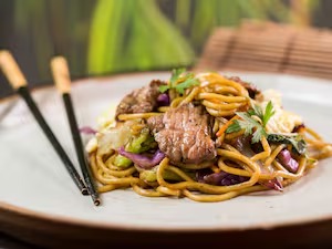 Nossos Noodles são preparados na tradição asiática, oferecendo uma experiência de sabor inigualável. Os Noodles são a escolha ideal para quem ama a culinária asiática! Escolha sua proteína Base: Noodles Molho: Agridoce Acompanhamentos: Tomate cereja, cenoura, brócolis, cebola e mix de folhas crocantes Toppings: Cebolinha e gergelim Serve 1 pessoa (500g)