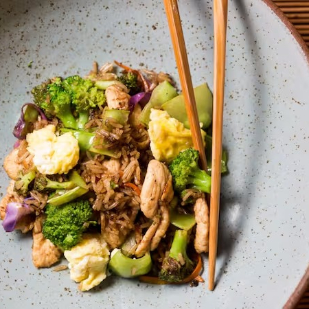 Descubra o sabor exótico do Nasi Goreng, o famoso arroz frito indonésio. Combinando arroz cozido com legumes frescos e temperado com molho de soja e especiarias (teriyaki), o Nasi Goreng é uma explosão de sabores que transporta você diretamente para as ruas da Indonésia. Escolha sua proteína Base: Arroz Molho: Teriyaki Acompanhamentos: Ovo, cenoura, brócolis, mix de folhas crocantes e vagem. Toppings: Cebolinha e Castanha de caju Serve 1 pessoa (500g)