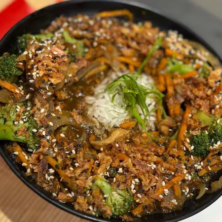 Nosso Yakisoba é preparado seguindo a autêntica tradição oriental, combinando macarrão salteado com vegetais frescos e um molho especial cheio de sabor. Uma explosão de aromas e texturas que conquista os apaixonados pela culinária asiática! Escolha sua proteína Base: Macarrão Yakisoba Molho: Yakisoba Acompanhamentos: Cenoura, ovo, brócolis, cebola e mix de folhas crocantes Toppings: Salsinha e Amendoim