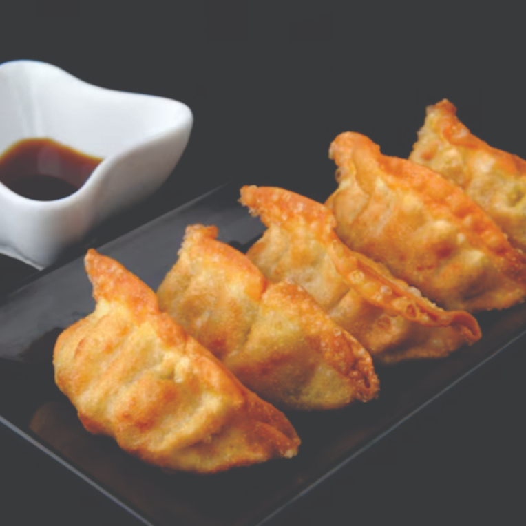 Bolinho tradicional da culinária asiática de modo frito. Temperado e com recheio de carne de porco