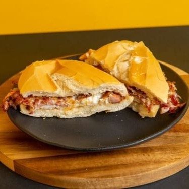 Pao de francês, pate de frango, pesunto, mussarela, alface e tomate.