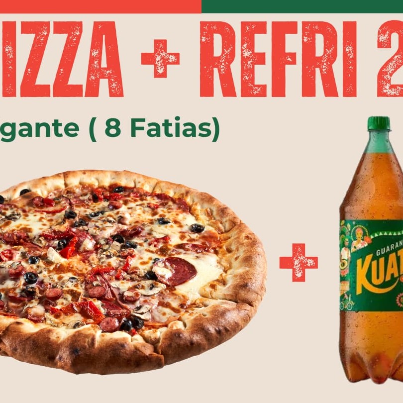 Promoção Pizza Gigante 8 fatias sabor a sua escolha + Kuat 2l