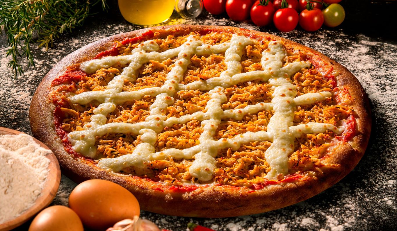 Molho ao sugo, mussarela, frango, catupiry e orégano