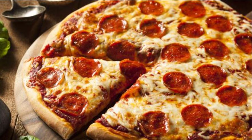 Molho ao sugo, mussarela, presunto, calabresa, tomate, pimentão, cebola, azeitona, milho e orégano.