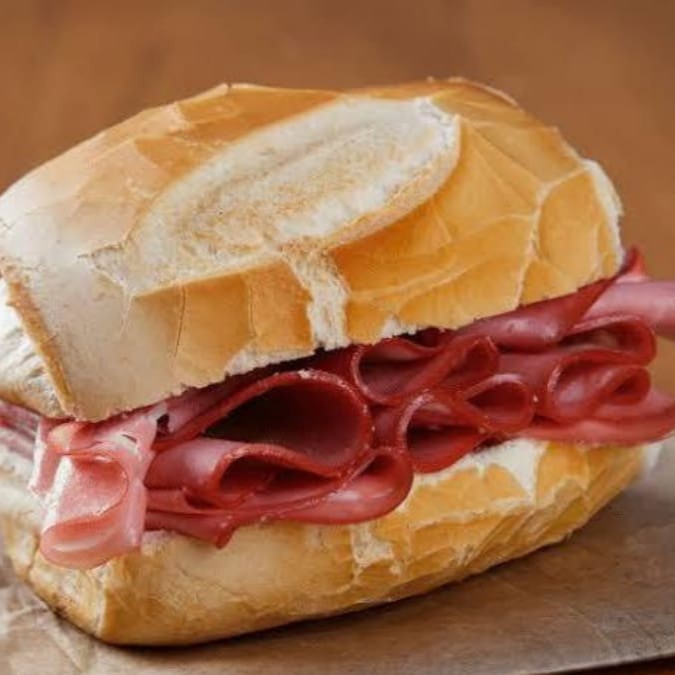 Pão de Sal com Mortadela Defumada - Pão fresco com mortadela defumada saborosa, uma combinação autêntica.