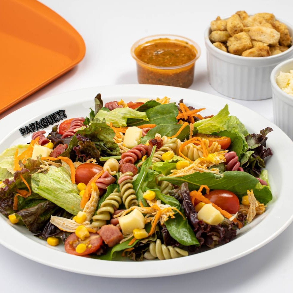 Monte sua salada com 8 ingredientes e escolha seu molho!