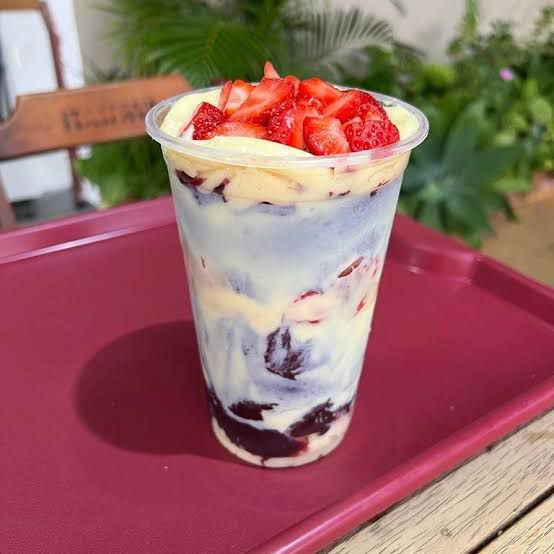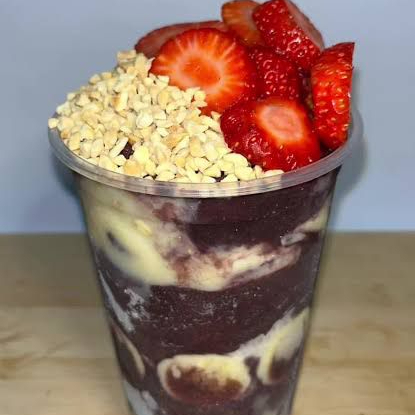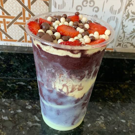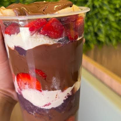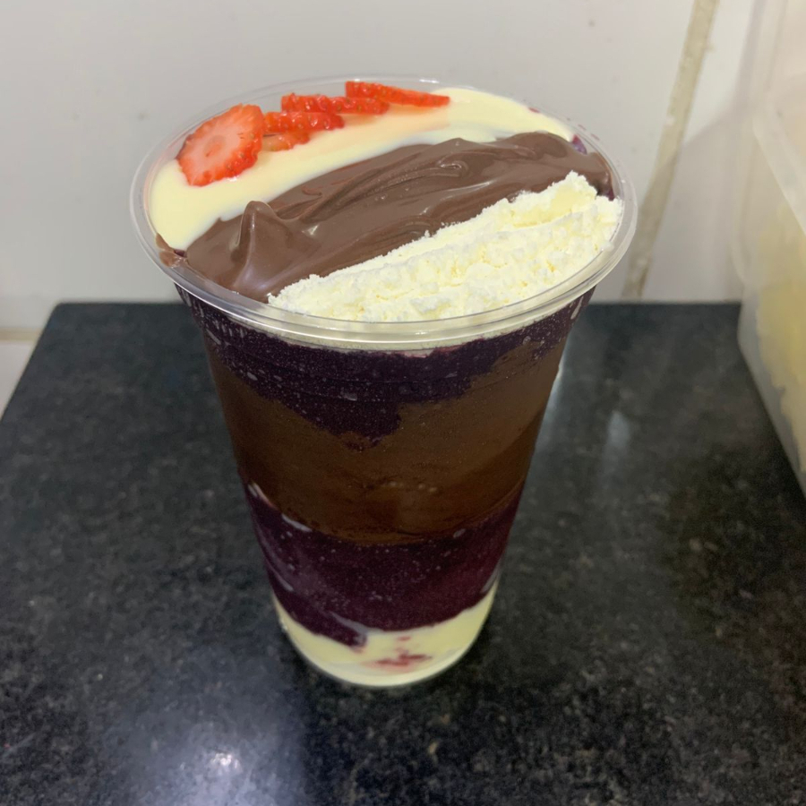 Açaí, creme ninho, creme avelä, morango, chantininho, leite em pó