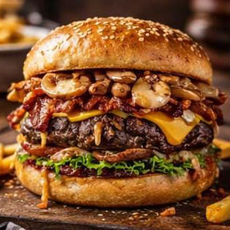 Pão, Carne de Hambúrguer, Mussarela, Salada, Milho, Batata Palha