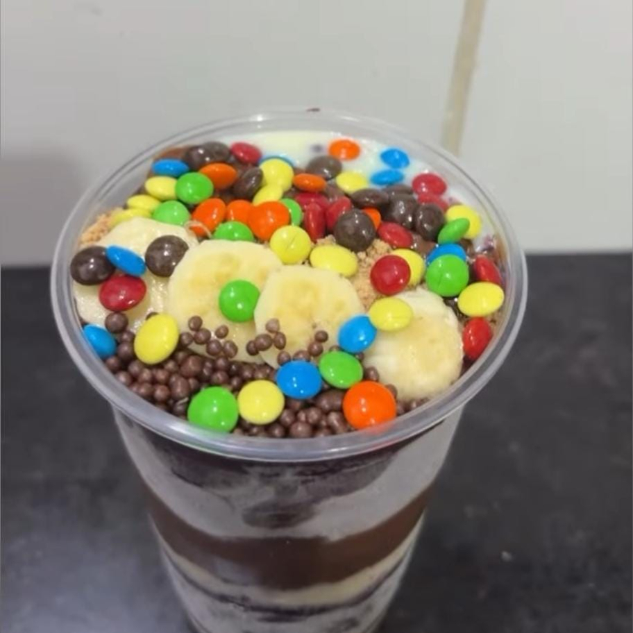 Açaí, banana, granola, leite condensado, leite em pó