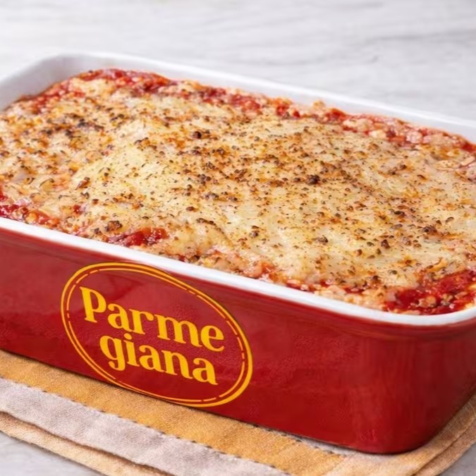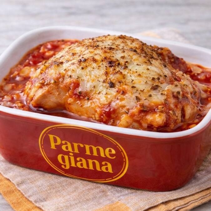 Novidade! 1.2 kg de parmegiana, preparada com sobrecoxas de frango deliciosamente marinadas e temperadas, e depois perfeitamente empanadas. Base de purê de batatas, molho pomodoro artesanal, mussarela ralada e um parmesão curado de 8 meses para finalizar e dar aquele sabor incrível. Tudo isso gratinado a 280 graus e delicadamente enviado em embalagens térmicas.
