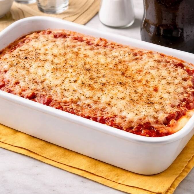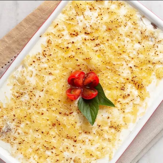 Atenção: Esta parmegiana de queijo Não leva molho de tomate como na tradicional