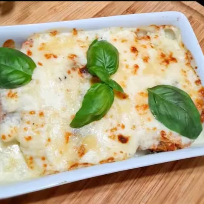 Atenção: Esta parmegiana de queijo Não leva molho de tomate como na tradicional!