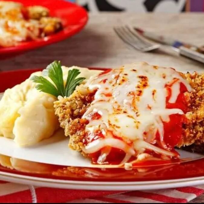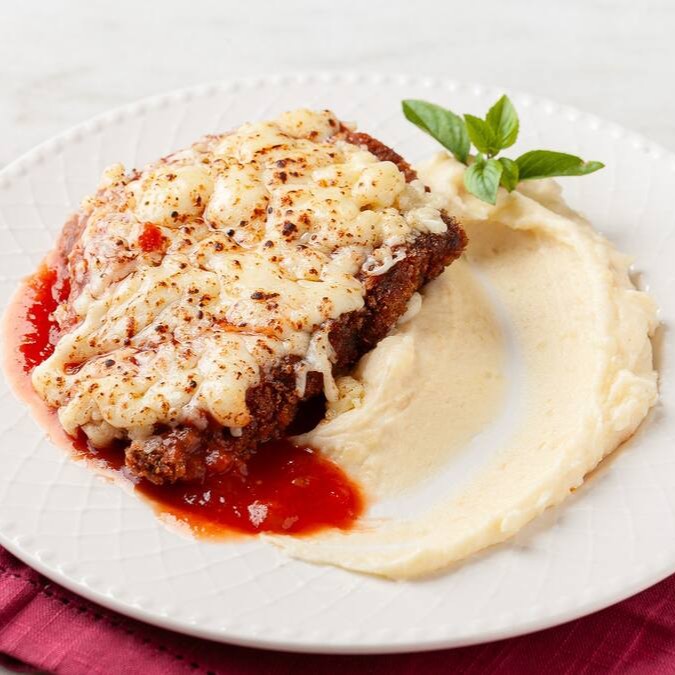 1.2 kg de parmegiana, composto por 03 bifes de peito de frango perfeitamente empanados, base de purê de batatas, molho pomodoro artesanal, mussarela ralada e um parmesão curado de 8 meses para finalizar e dar aquele sabor incrível. Tudo isso gratinado a 280 graus e delicadamente enviado em embalagens térmicas.