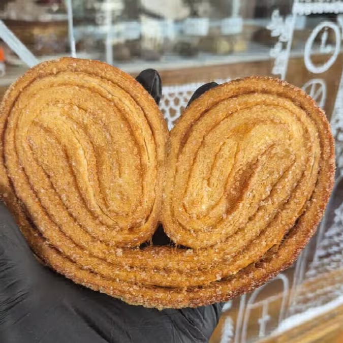 Biscoito tradicional francês, feito com massa folhada e açúcar! Crocante e caramelizado! Experimente!