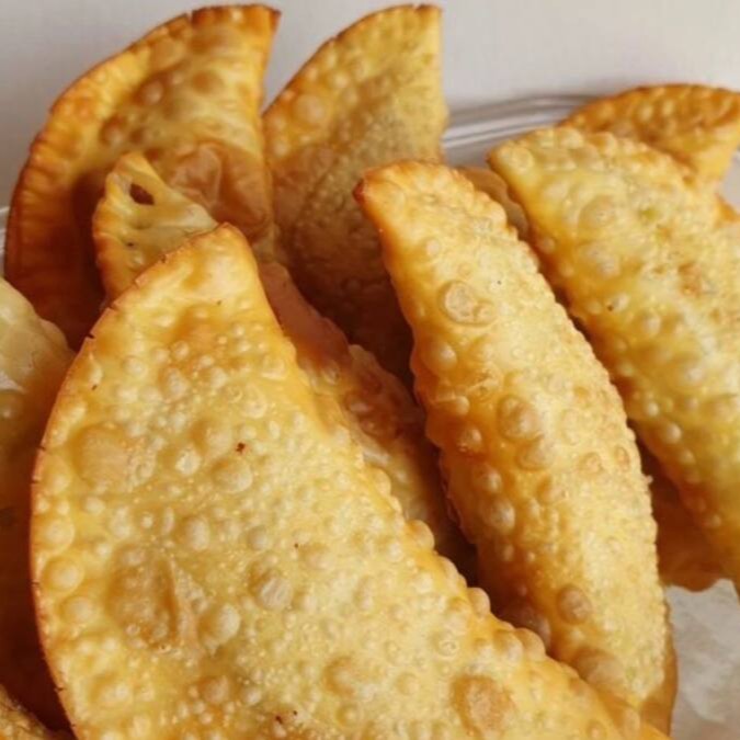 pasteis medios saborosos leva carne,queijo,pizza e frango