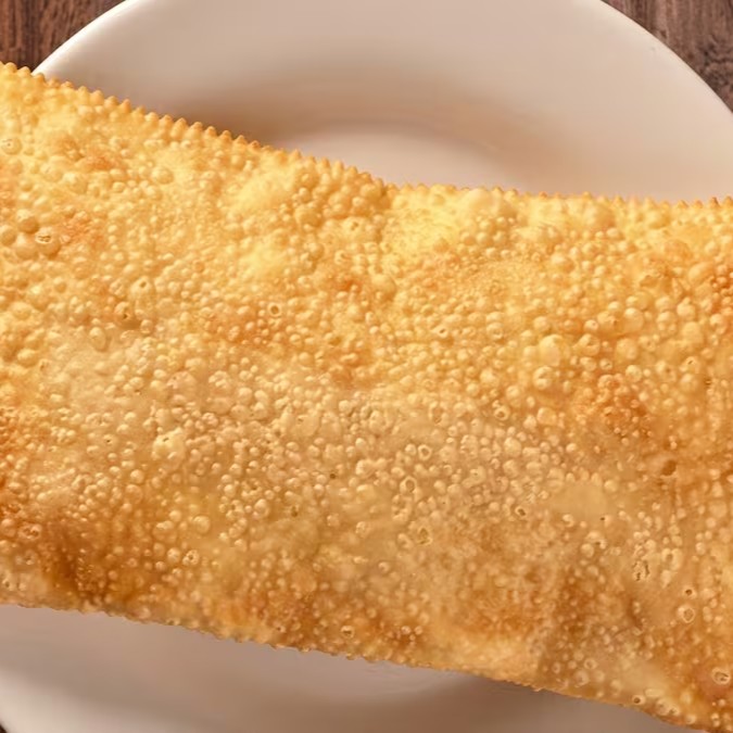 Pastel de 20 cm, super crocante, recheado com frango desfiado e bem temperado. Leve, saboroso e sempre uma ótima escolha!