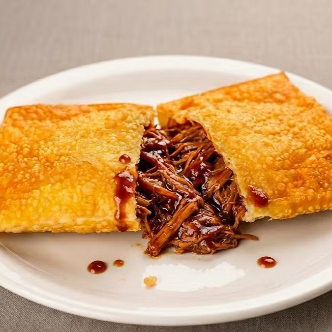 Pastel de 20 cm, crocante e recheado com costelinha de porco desfiada e suculenta, envolvida em delicioso molho barbecue. Marcante e irresistível!