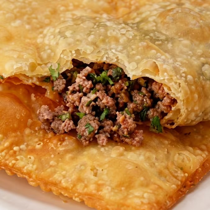 Pastel de 20 cm, super crocante, recheado com carne moída bem temperada e suculenta. O sabor tradicional que nunca decepciona!