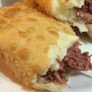 Pastel de 20 cm, super crocante, recheado com carne seca desfiada e bem temperada, finalizada com muito Catupiry cremoso