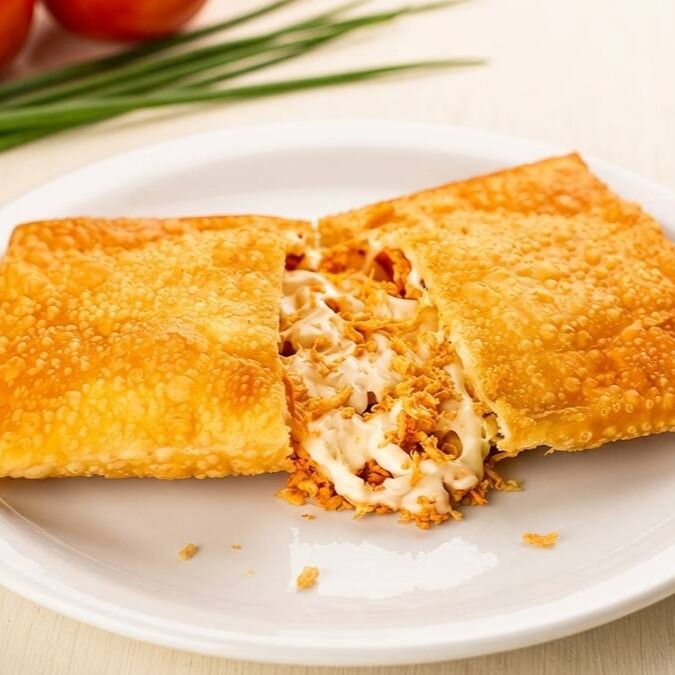 Pastel de 20 cm, dourado e super crocante, recheado com frango desfiado e muito Catupiry cremoso. Perfeito e cheio de sabor!