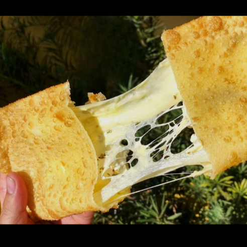 Pastel frito recheado com queijo, irresistivelmente crocante e saboroso.
