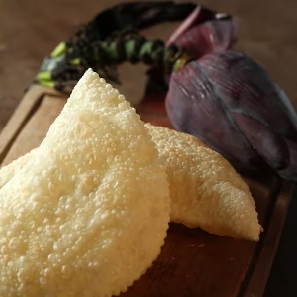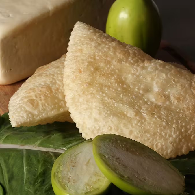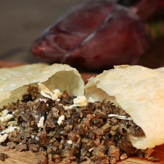 Pastel de Umbigo de Banana com Carne e Queijo do Serro.
