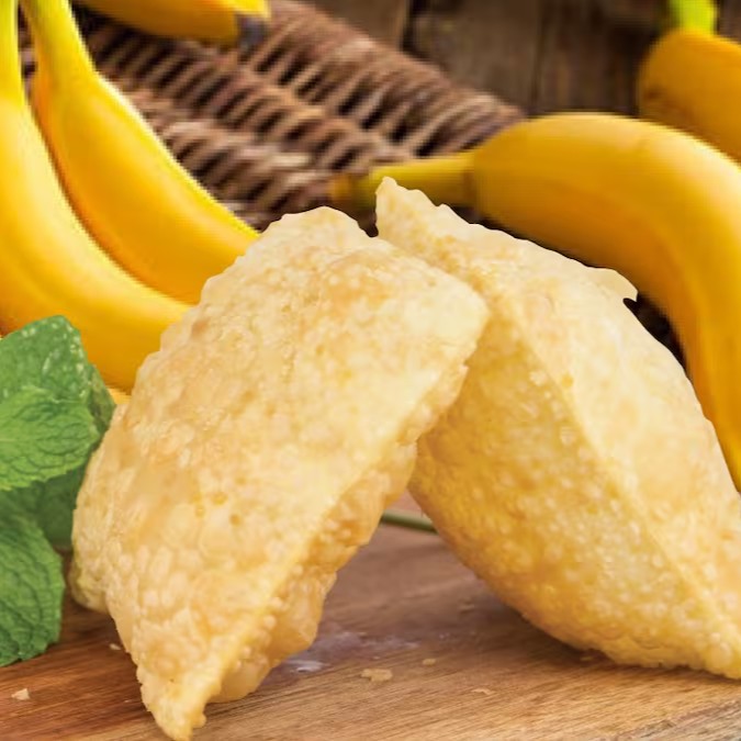 Pastel de banana com açúcar e canela.
