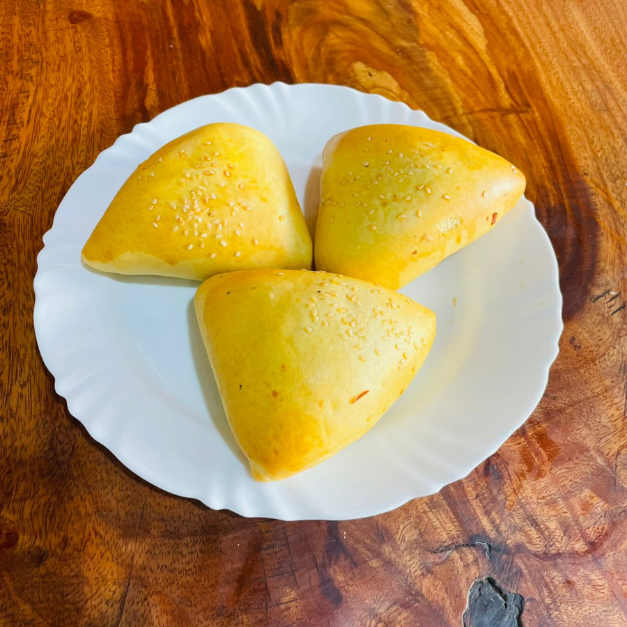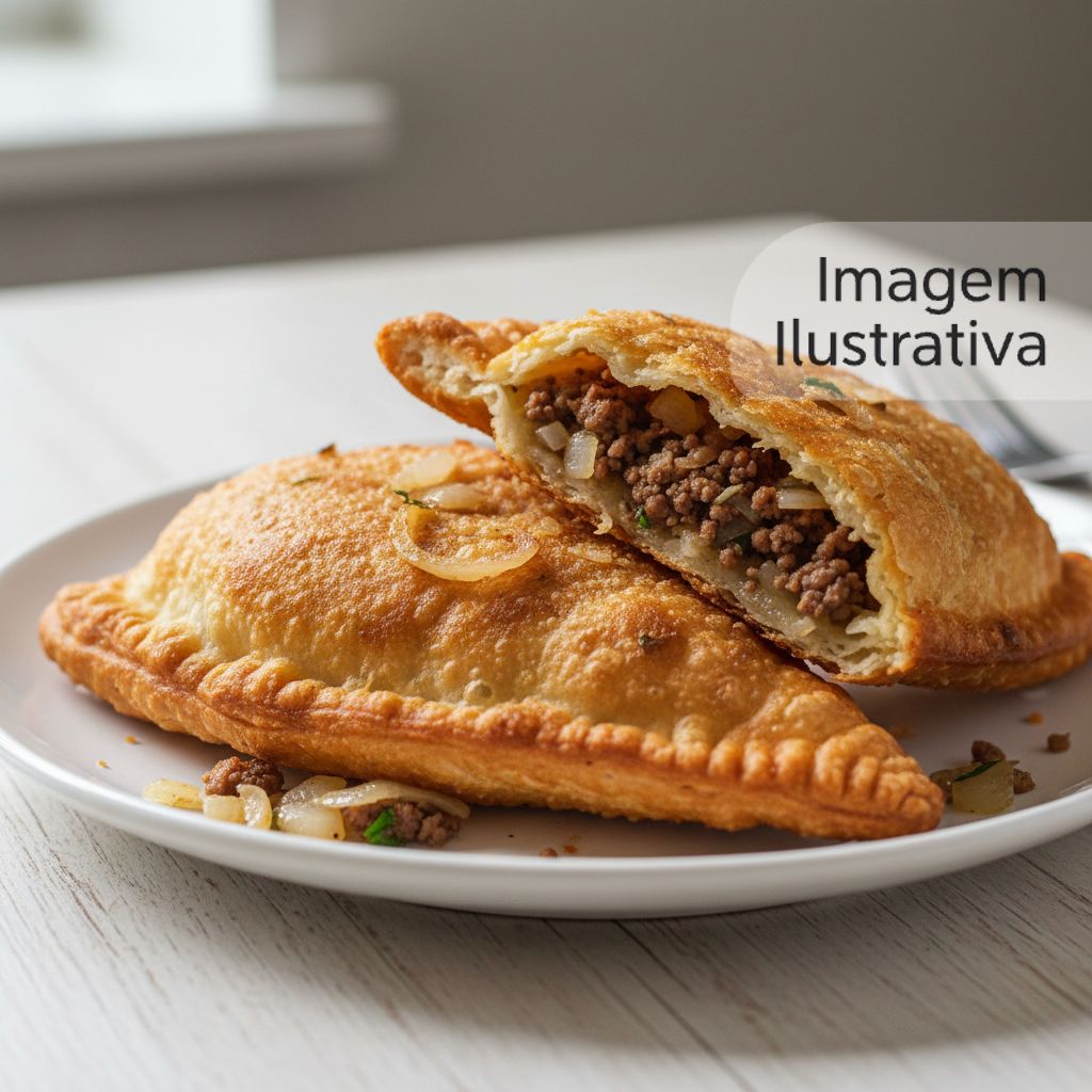 Delicioso pastel recheado com carne moída temperada e cebola picada, frito até ficar crocante.